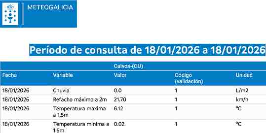 Resultados e clasificacións en Calvos