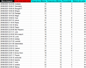As apostas en temperatura máxima están moi abertas e van dende os 15 ata os 22º C. Os valores para as mínimas oscilan entre 11 e os 17º C., estas tamén con pequenas oscilacións. As precipitacións móvense nun rango de amplitude de entre 0 e 4 litros, mentras que os refachos de vento van dende os 11 ata os 65 km/h.