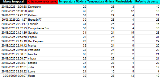 No enfrontamento entre Denodeno e Popolo as diferenzas están na chuvia, co resto de parámetros moi similares.