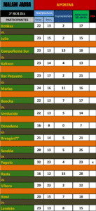 A destacar, as loitas de semifinais entre Botikas-Julio e Compoñente Sur-Kaltxon, pola 5ª praza entre Verducido-Beocha e Bar Pequeno-Marius. Tamén as que van definir a final B, con Breogán77-Denodeno e Sarabia-Popolo. E por evitar derrotas temos a Víbora-Rasta e Xowi-Landrán.