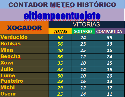 Víbora estaba no lugar correto e, ainda que outr@s andiveron máis finos, a combinación final foi a mellor. Michi e Jose Lopez dous puntos por tras, e tres máis alá, Xowi e Sarabia, que redondea a fin de semana coa vitoria meteo.